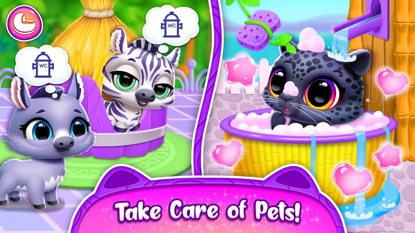 Jungle Floof - Bulabileceğiniz en sevimli ormanlara hoş geldiniz! Evcil hayvanlar eşyası, zebra, kaplan, koç, puma, aslan, vaşak, geyik, eşek veya başka ilginç bir hayvan gibi çeşitli renklerde egzotik kedilerle dolu. Evcil hayvanlarınızı beslemeyi, onlarla oynamayı, onlara sevimli kıyafetler almayı ve güzel tarzlar yaratmayı, sağlıklarına dikkat etmeyi ve hepsini sessiz saatlerinde uyutmayı unutmayın. Zaman çok hızlı ve fark edilmeden geçecek, ama her biri gözlerinizin önünde büyüyecek ve siz de evinizi neşeyle doldurmaya devam edeceksiniz.