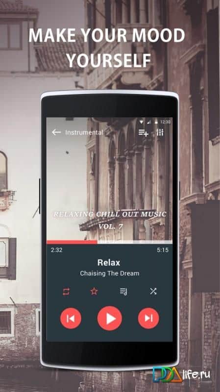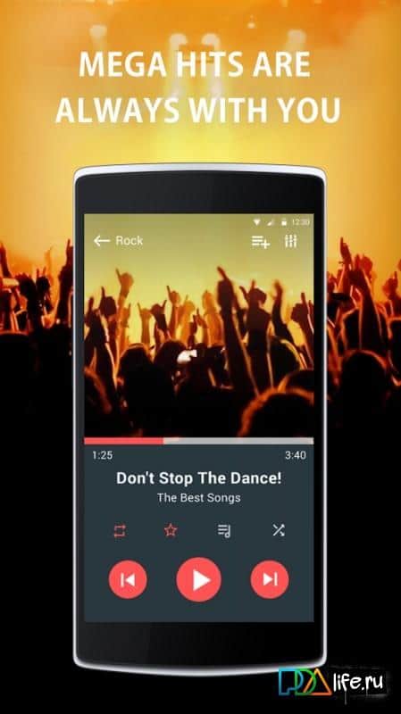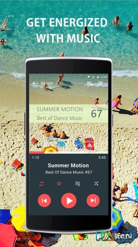 Uygulama, kategorilere ve türlere göre ayrılmış geniş bir müzik koleksiyonuna erişim sağlar, en popüler parçaların bir derlemesi mevcuttur. Kullanışlı bir arama, kapak desteği ve şarkı sözlerini görüntüleme özelliği bulunmaktadır. Çalar, basit ve hoş bir arayüze sahip olup kullanımı kolaydır, onu tamamlayan özel bir ekolayzır ve bir dizi ön ayar bulunmaktadır. Kilit ekranı için bir widget mevcuttur.