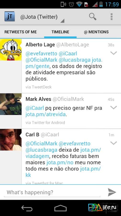 Yorumlar ile Jwitter üzerinde Android