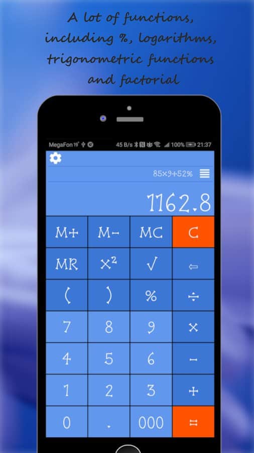 Hesap Makinesi - Zihnimiz bazen her şeyi hızlı bir şekilde hesaplayamaz, ya da sayılar o kadar büyük ki, sıradan bir insanın bunu yapması imkansız. Böyle özel durumlarda her zaman hesap makinesi kurtarıcıdır, bu yüzden onu sürekli telefonunuzda bulundurmak harika bir çözüm, hayatı kolaylaştırır. Bu uygulamayı indirerek, toplama, çıkarma veya diğer işlemler için gerekli işlevleri kullanmanın ne kadar kolay olduğunu kendiniz göreceksiniz. Hesap makinesi sadece kullanışlı değil, aynı zamanda çok renkli, çünkü istediğiniz zaman temayı değiştirebilirsiniz.