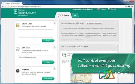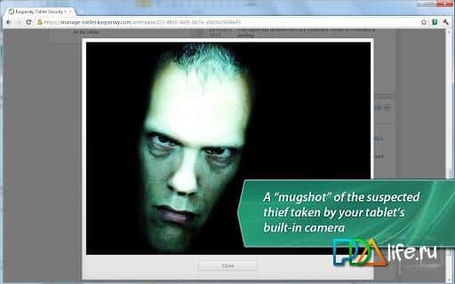 - Kaybolma ve hırsızlığa karşı koruma için "Anti-Hırsız". Ayrıca kaybolan tabletinizi kullanan kişinin "Gizli fotoğrafı". Ön kamera ile çekilen fotoğraflar otomatik olarak web portalına iletilir, burada işlevlerin etkinleştirilmesi gerçekleşir – Engelleme, Veri silme, Bulma ve Gizli fotoğraf.