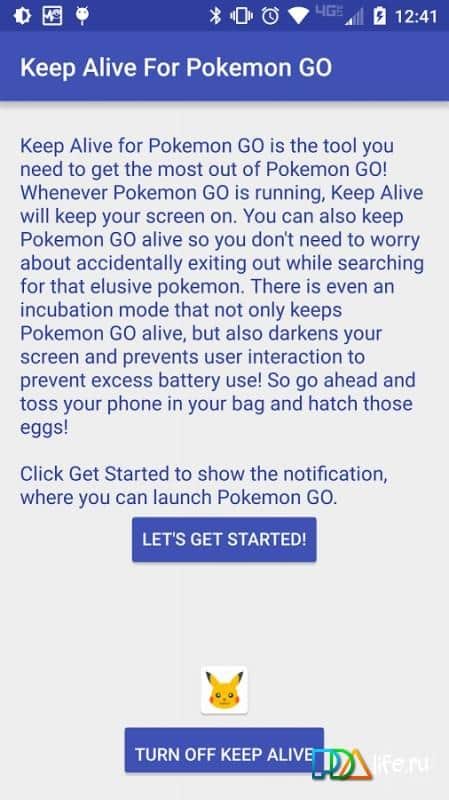 Pokemon GO için Keep Alive - Son zamanlarda dünya üzerindeki herkes bir oyuna takmış durumda ve adı Pokemon GO. Bu uygulama, yalnızca değerli pokémonu yakalamak için saatlerce sokakta dolaşmaya hazır olan tüm tutkulu oyunculara yardımcı olacak. Bu, böyle insanların hayatında önemli bir rol oynayacaktır. Sadece birkaç basit ama çok gerekli işlevi yerine getiriyor. Öncelikle, ekranınızı kapatarak bataryanın şarjını azaltıyor, ancak oyunu kapatmadan devam ediyor, böylece bulunan pokémonlar hakkında bildirim almaya devam ediyorsunuz, fakat bataryanız çok daha uzun süre dayanıyor. Ayrıca, sunucu ile bağlantı kesilirse oyunu otomatik olarak yeniden başlatıyor, böylece sahibinin hayatını kolaylaştırıyor ve sürekli akıllı telefon ekranına bakma gereksinimini ortadan kaldırıyor.