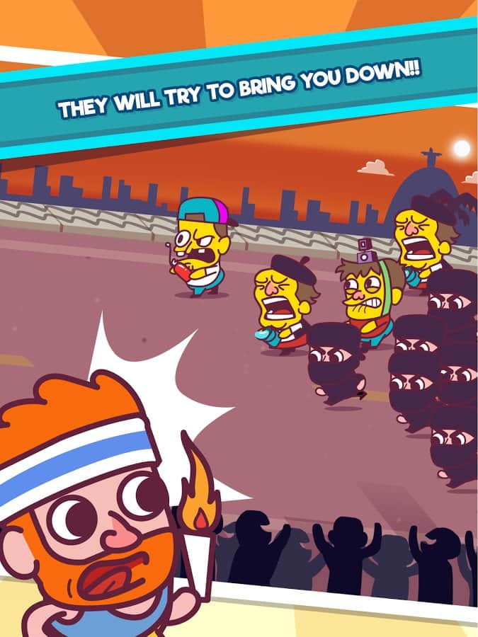 Ateşi Yakın! Oyun – Android için heyecan verici bir koşu oyunu, burada cesur sporcunun olimpiyat ateşini taşımalarına yardımcı olacaksınız. Kahramanı yönlendirin, böylece ileri koşup önündeki tüm engelleri ve düşmanları aşabilsin. Yanlardan sağa sola manevra yapın ve ateşi söndürmek isteyen düşmanlarla çarpışmalara izin vermeyin. Yol boyunca yangın söndürücü, ninja ve diğer düşmanlar gibi çılgınlarla karşılaşacaksınız. Yol boyunca çok sayıda güçlendirici, madeni para, alarm ve ateş toplayın ve bunları zamanın yavaşlatılması veya özel kuvvetlerin yardımı gibi meselelerde kullanın. Eğlenceli kahramanın olimpiyat ateşini hedefe ulaştırmasına yardımcı olun ve bu oyunda kendi rekorunuzu kırmayı unutmayın.