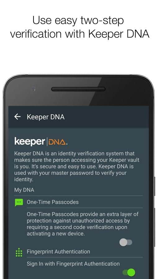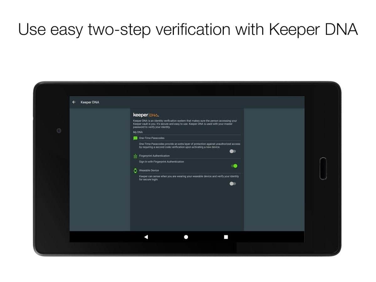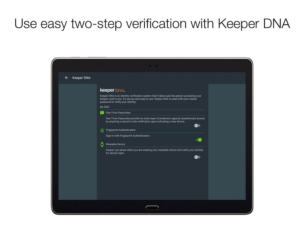 - Çok faktörlü kimlik doğrulama Keeper DNA