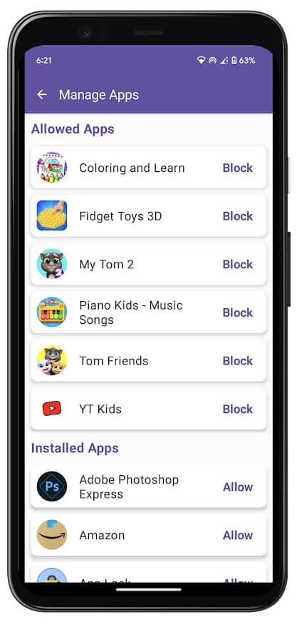 - Erişim Kontrolü: Zamanlayıcı çalışırken çocuk yalnızca izin verdiğiniz uygulamaları kullanabilecektir. Diğer tüm uygulamalar engellenecektir.