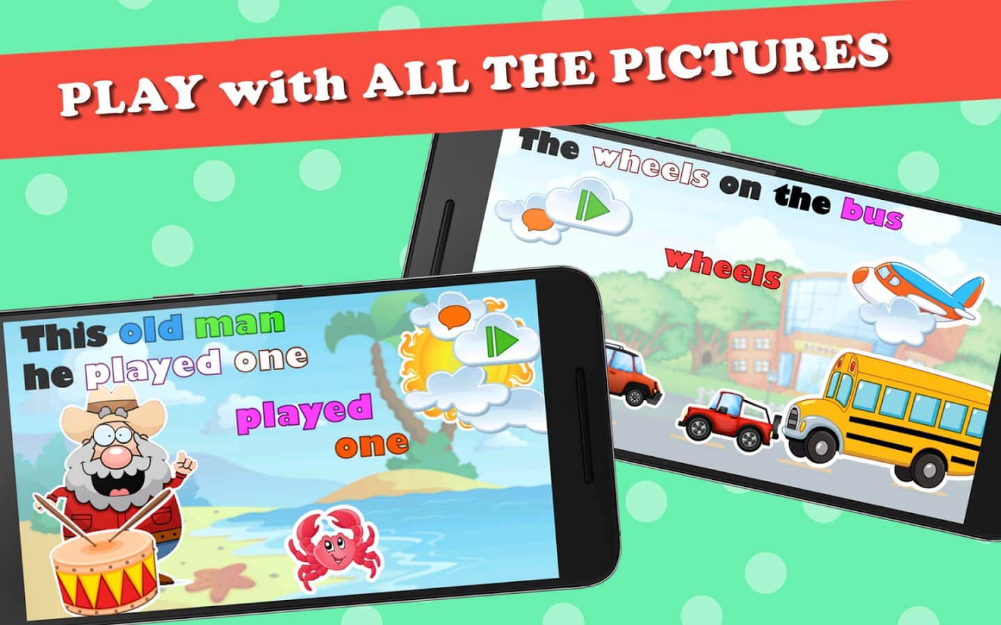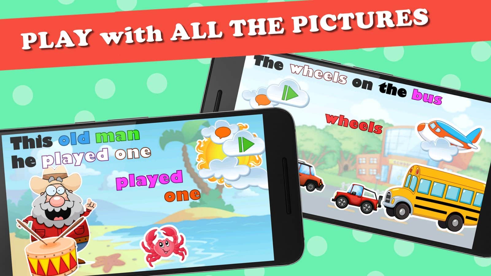 Çocuk Hikaye Kitabı Şarkıları - okul öncesi çocuklar için okuma becerilerini geliştirmeye yönelik harika bir uygulama. Bu uygulama, fantastik hikayelerle dolu, şarkılar, fotoğraflar, anlatımlar ve animasyonlarla desteklenen bir oyun kitabıdır. Oyun sırasında çocuk, basit kelimeleri okumayı, nesneleri bulmayı ve hikayelerin kahramanlarıyla birlikte şarkı söylemeyi öğrenecektir; örneğin: Jack ve Jill, Beş Küçük Ördek, Köpeğim Nerede, Otobüsün Tekerlekleri ve daha birçokları. Çocuğunuza Çocuk Hikaye Kitabı Şarkıları uygulamasıyla kolay ve rahatsız etmeden okumayı öğretin.