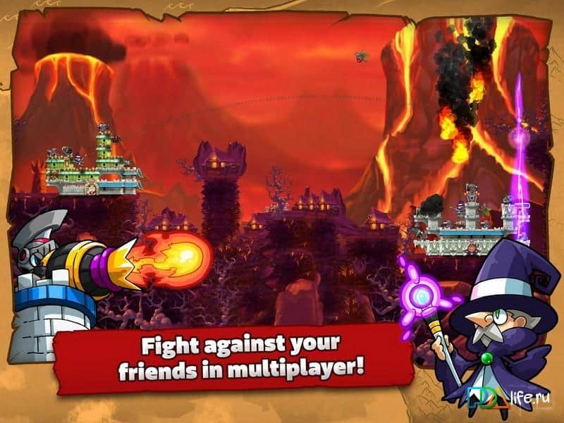 Şatoların Kralı - Android için bir arcade oyunu, burada göreviniz eşsiz bir kale inşa etmek ve diğer oyuncularla PvP'de savaşmaktır. Kalenizi inşa edin, onu toplar, mühimmatlar, mancınıklar ile donatın ve düşmana karşı isabetli ve doğru atışlar yapın. Tehlikeli düellolara katılın ve ayrıca kampanya moduna katılarak savaşma ve strateji becerilerinizi gösterin. Bu oyunda kolay kontrol ve iyi animasyona sahip canlı grafiklerle karşılaşacaksınız. En güçlü hükümdar olun ve yenilmez krallığınızı yaratın.