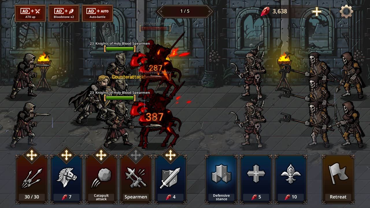 Ayrıca savaşlarda yardımcı olması için farklı ülkelerden askerler ve birlikler kiralayın. Vampir lordlarını yenin ve kahramanınızın ve ordularınızın yeteneklerini geliştirmek için ekipman kazanın.