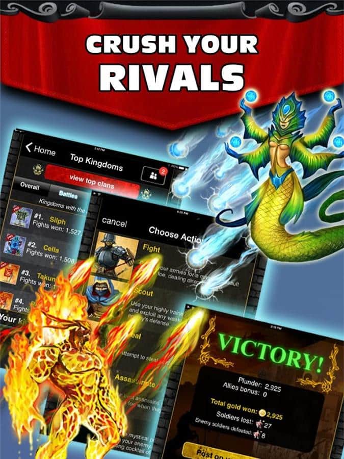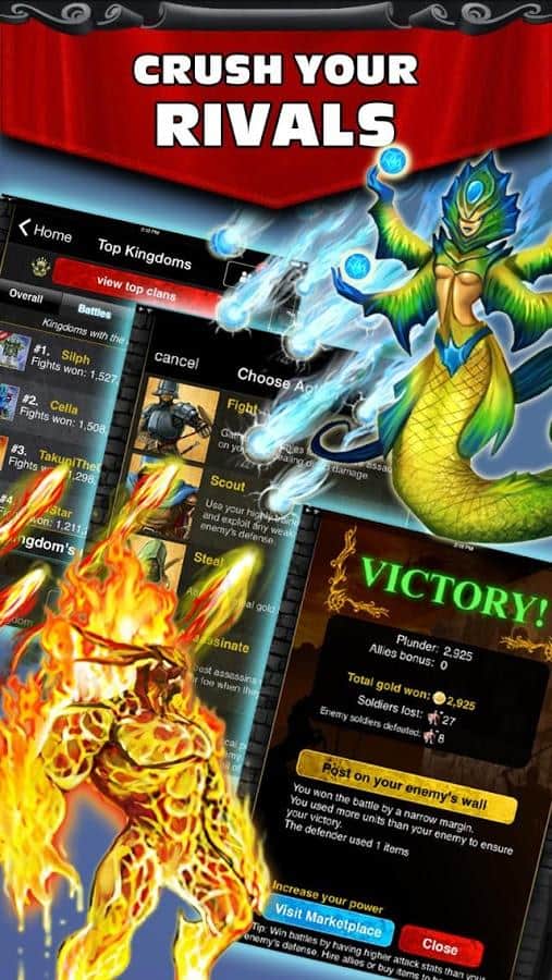 Krallıklar Savaşta: Sert PVP - Müttefiklerinizle birlikte kahramanlık savaşlarına katılın. Bu oyun, takım halinde oynamayı öğrenmenizi sağlayacak, çünkü burada tek başınıza bir şey yapamazsınız. Oyunun başında bir eğitim alacak ve düşmanları nasıl yok edebileceğinizi öğreneceksiniz. Burada birkaç yöntem var, ordunuzla düşmanınıza baskın gönderebilir, ihtiyacınız olan her şeyi öğrenmek için keşif gönderilebilir veya klan arkadaşlarınızdan oluşan bir ekip toplayıp büyük bir grup olarak düşmanınıza saldırabilirsiniz.