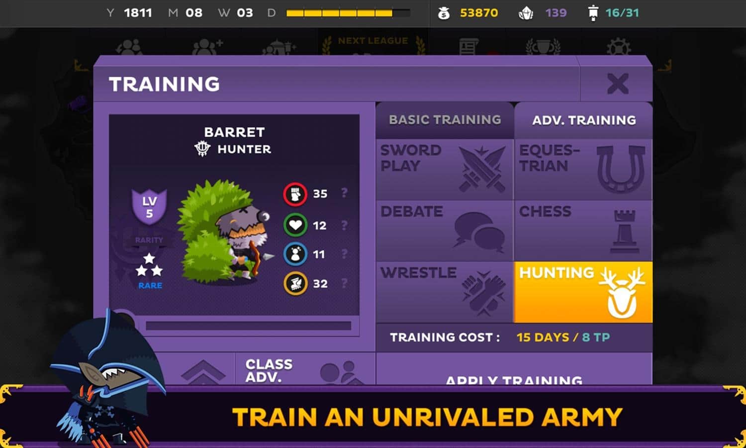 Kralın Ligi: Macera – uzun zamandır beklenen bir strateji oyunu, artık windows phone platformlarında da mevcut. Bu oyunda hedefiniz, 40 benzersiz sınıfı kullanarak dev bir ordu toplamak ve diğer oyuncularla bu oyundaki birincilik için rekabet etmek olacak. Bu, oyunun geliştirilmiş bir versiyonu ve içinde 46 benzersiz kahramana ve oyun sırasında akıllıca harcamanız gereken büyük miktarda kaynağa erişiminiz olacak. Planladığınız görevleri yerine getirin ve güçlü patronların gizlendiği zindanları keşfedin. Sizi, yeni başlayanlar için uygun olan kolaydan profesyoneller için çok zor olana kadar üç zorluk seviyesi bekliyor, ayrıca sonsuz oyun modu da mevcut.