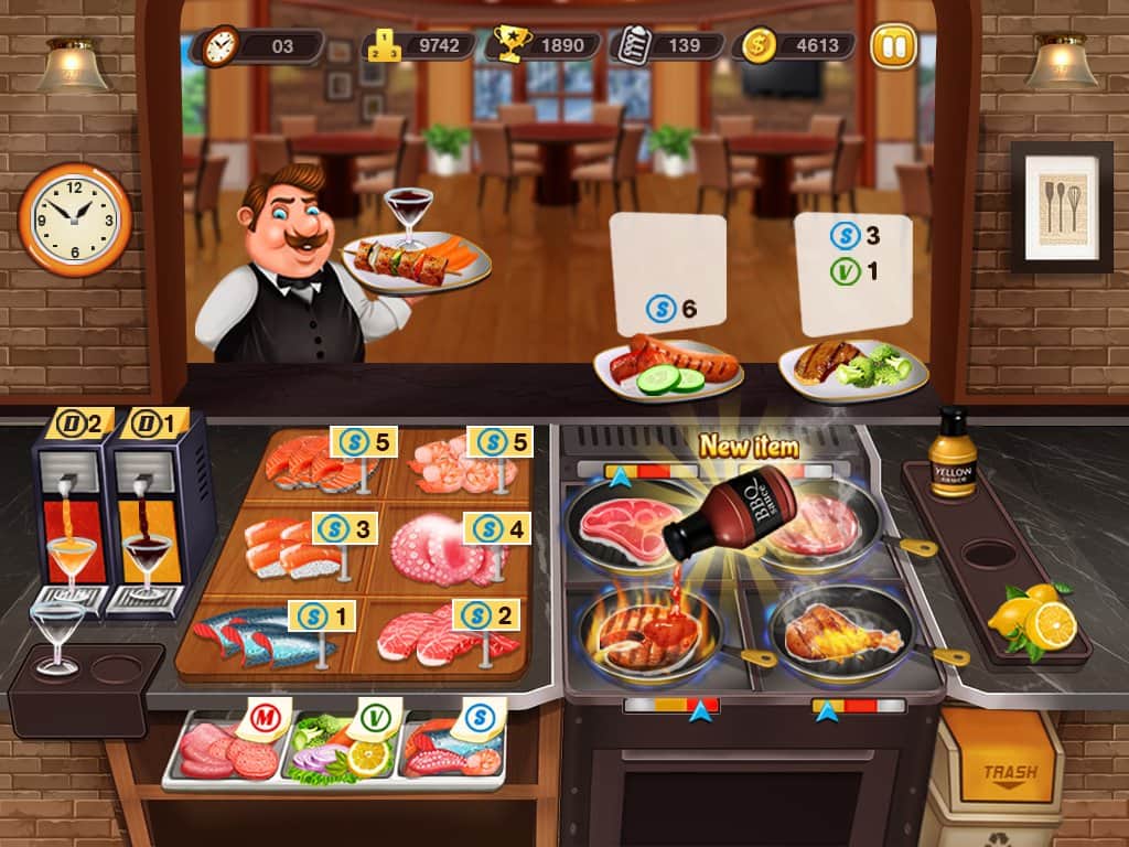 Mutfak Pişirme Çılgınlığı – Android için sürükleyici bir oyun, burada popüler bir restoranın şef aşçısı rolünü üstlenebilirsiniz. Bu oyunda bir restoranın mutfağında bulunacak ve görevleriniz, talepkar müşteriler için çeşitli yemekler hazırlamak olacak. Müşterilerinizi bekletmemek için bu oyunun çeşitli görevlerini en kısa sürede yerine getirin. Tavuk, balık ve et yemekleri hazırlayın, en taze malzemeleri ve çeşitli sosları kullanarak yemeklerinizi pişirin. Yemeklerinizi mümkün olduğunca alışılmadık şekilde süsleyin, restoranınızın ziyaretçilerini gerçek sanat eserleri ile şaşırtın. Tamamlanan görevler için ödüller kazanın ve mutfağınızı ihtiyaç oldukça geliştirin.