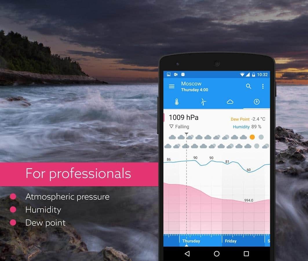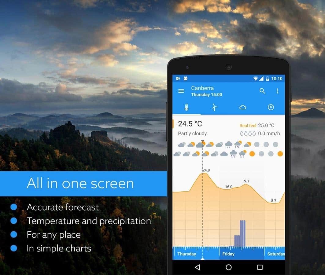 Klara - Çok doğru ve kaliteli bir hava tahmini. Bu uygulamanın benzerlerinden en büyük farkı, burada oldukça alışılmadık bir kontrol sisteminin olmasıdır. Evet, tam olarak kontrol, ne kadar garip gelse de. Zamanı değiştirmek için kaydırıcıyı elle hareket ettirmeniz gerekecek, bu da belirli bir zaman dilimindeki havayı değiştirecektir. Uygulama oldukça eğlenceli, renkli ve kullanışlı bir arayüze sahiptir. Buna ek olarak, tahmin sadece sıcaklık ve yağış olup olmadığını değil, aynı zamanda bulutluluğu ve basıncı da gösterecektir. Hava tahmininden her zaman haberdar olun.