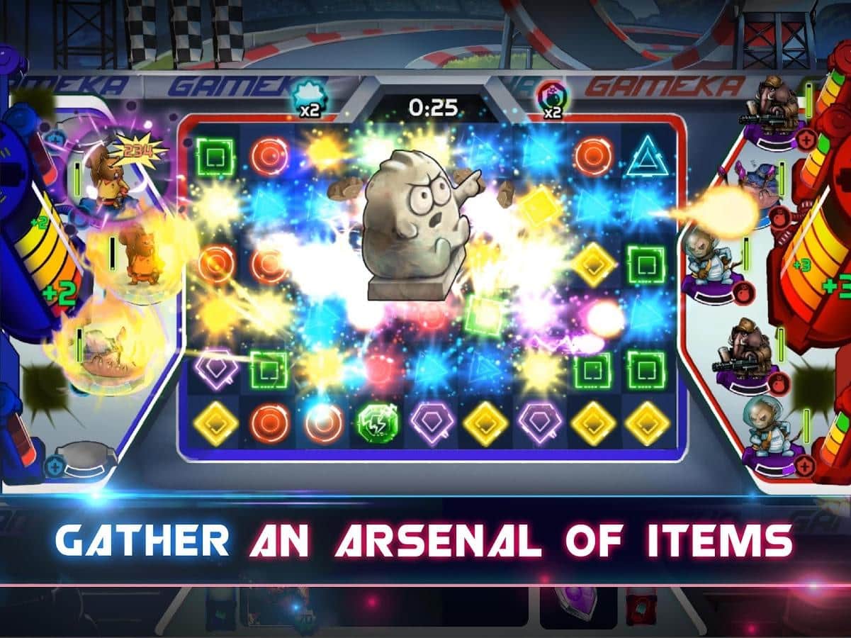 Kluno: Kahraman Savaşı – Android'de çevrimiçi bir oyun, burada arenada diğer oyuncularla PVP savaşlarında mücadele edeceksiniz. Bu oyunda, tüm zekanızı ve hızlı tepkinizi sergilemeniz gereken üçlü eşleştirme unsurları eklenmiştir. Beş oyuncudan oluşan bir takım oluşturun ve rakip takımını ve onların üssünü yok edin. Oyun, bulmacalarla birleşen hızla gelişen eylemlerle sizi mutlu edecek, ayrıca kahramanların benzersiz yetenekleriyle. Savaşta size yardımcı olacak çeşitli eşyaların geniş bir cephaneliğini keşfedin ve savaş stratejinizi geliştirin.
