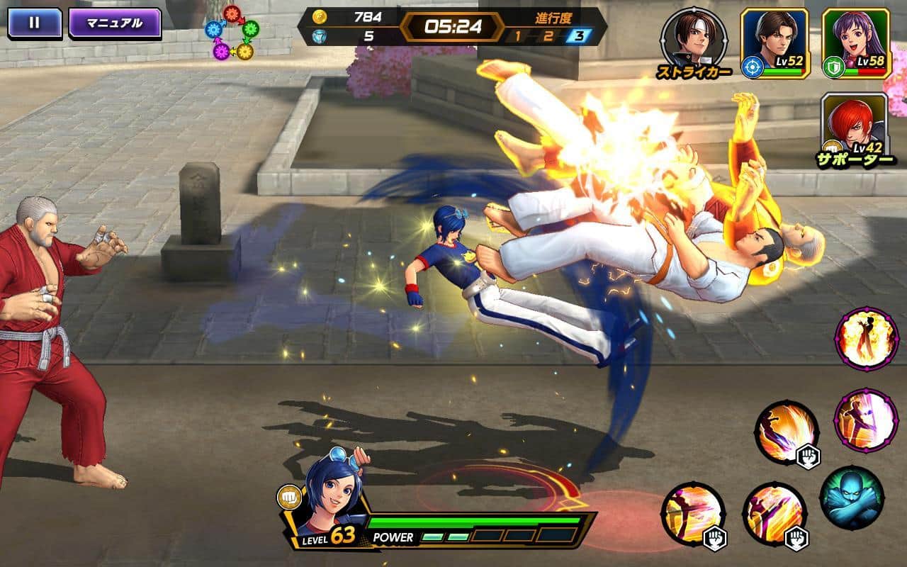 The King of Fighters ALLSTAR - Android için RPG unsurları içeren bir aksiyon oyunudur. Bu oyunda, KOF serisinin en iyi savaşçılarından oluşan bir rüya takımı oluşturmanız gerekecek. Bu serinin tarihindeki ilk kez, çok oyunculu mod sizi bekliyor: güçlü patronlara karşı arkadaşlarınızla birlikte savaşın, rakibinize tek başınıza meydan okuyun veya üç savaşçıdan oluşan takım savaşlarına katılın. Güçlü patronlarla savaşmak için çeşitli kombinasyonlar kullanın. Daha önce deneyimleyemediğiniz hayalet bir hikayeyi deneyimleyin.