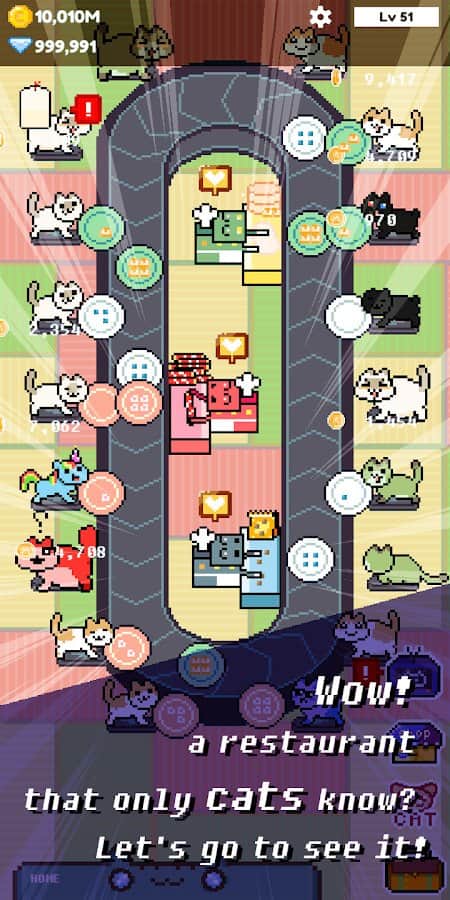 Kediler Restoran! - Kediler de restorana gidebilir! Bu sevimli hayvanların hayalini gerçekleştirin ve muhteşem yemekler yaratarak harika bir iş kurun. İlginç bulmacaları geçin, 100'den fazla tarifle menüyü genişletin, şenlikli banketler düzenleyin, siparişleri hızlı bir şekilde yerine getirmeyi öğrenin ve şehirdeki tüm kedileri besleyin. Sadece robotlar gerçek şeflerin yerini alabilir ve maaş ve işin kalitesi gibi birçok konuda işleri önemli ölçüde kolaylaştırabilir. Mümkün olduğunca çok robot satın alın, böylece daha fazla para kazanırsınız!