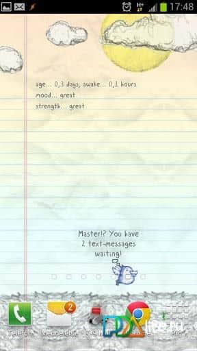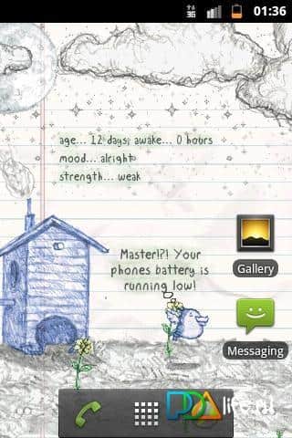 Kotori Canlı Duvar Kağıdı - Android için tamagotchi işlevine sahip canlı duvar kağıtlarıdır. Evcil hayvanınıza bakın, ona iyi bakın, büyütün, o da size e-posta, sms, kaçırılan aramalar ve diğer gerekli bilgiler konusunda yardımcı olacaktır.