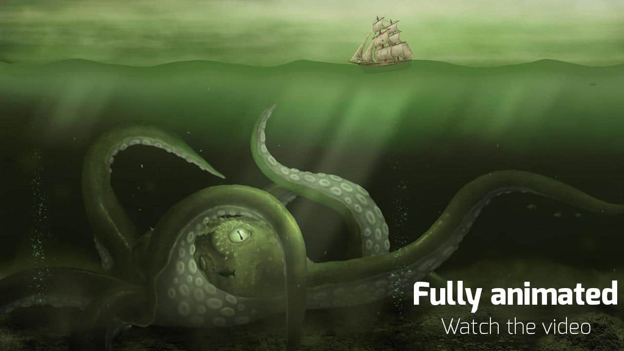 Kraken Canlı Duvar Kağıdı – Goodkind geliştiricisinden dev bir canavarın derin okyanusun dibinde saklandığı fantastik canlı duvar kağıtları. Kraken o kadar büyüktür ki, bir gemi ona kıyasla sadece küçük bir oyuncak gibi görünür ve bir an içinde onun kollarına takılabilir. Güneş ışınları suyun derinliklerini delip geçiyor, balıklar yüzüyor, belli ki bugün canavar aç değil ve sadece derinlikten olan biteni izliyor!