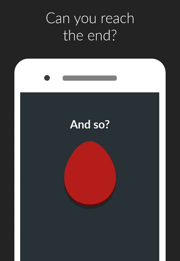 Kırmızı buton: dokunma - Bu oyunda gerçekleşecek her şey aslında şaka değil. Zorlu görevleri geçip geçmeyeceğinize ya da her türlü konu üzerinde uzun diyaloglar okuyup okumayacağınıza siz karar vereceksiniz. Kırmızı butona dokunmaktan ne kadar süre kaçınabileceğinizi öğrenerek kendinize gerçek bir meydan okuma yapın, çünkü ona asla dokunmamalısınız. Zamanla buton yeni şekiller alacak ve yukarıdan replikler değişecek, ancak öz her zaman aynı kalacak. Geçiş sürecinde, örneğin sarı butonla yabancı biriyle konuşarak veya ekrana 100 kez dokunarak tam görevleri geçmeniz gerekecek.