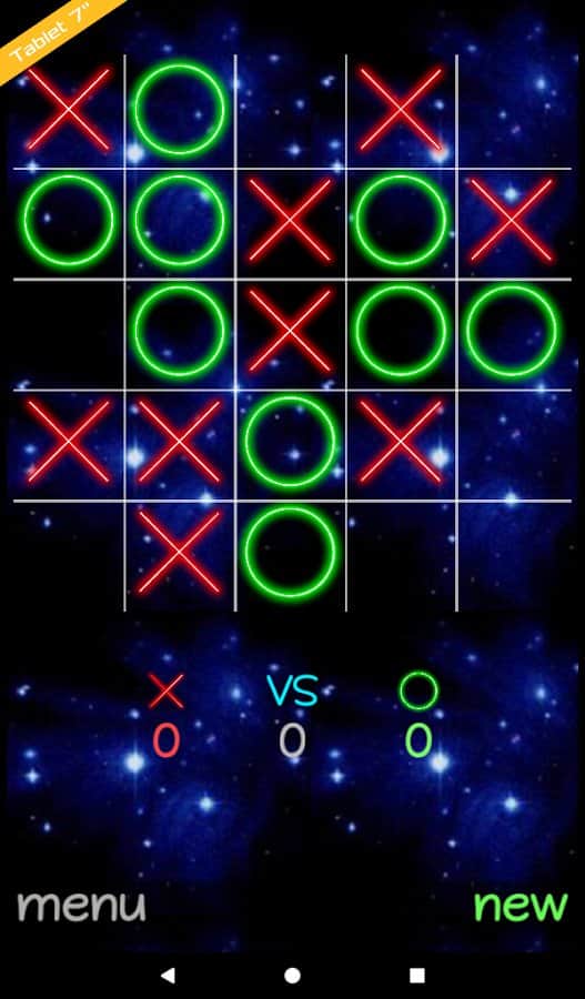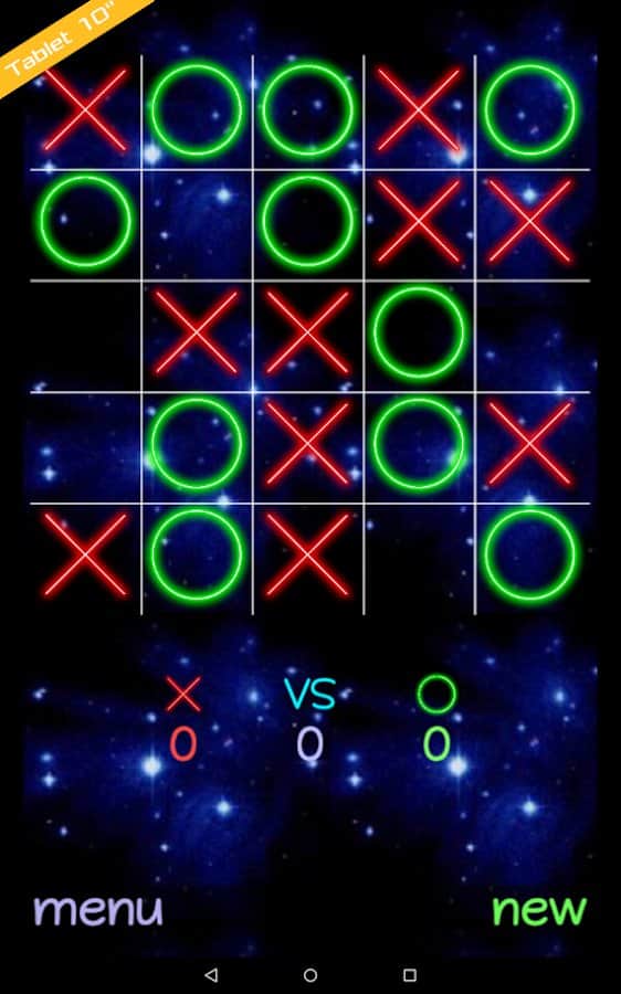 XOXO - Android'de oynamak için klasik XOXO'lar. Bu herkesin bildiği oyunu çok oyunculu modda oynayın ve yeteneklerinize bağlı olarak zorluk seviyesini seçin. Harika bir oyun, burada XOXO'lar için alan, milyarlarca küçük gezegenin arasında açık uzayda yer alacak. Ayrıca oyunun tasarımını seçme ve değiştirme imkanına sahip olacaksınız.