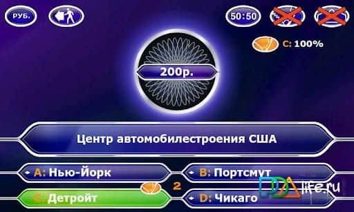 Farklı alanlarda bazı bilgilere ve biraz da şansa ihtiyaç duyan ilginç bir oyun! Sadece farklı zorluk seviyelerinde sorulara cevap vererek bir milyon kazanın. Kazanma hedefinize yaklaştıkça sorular daha zor hale geliyor. Televizyon versiyonundaki gibi oyunda 3 ipucu var: Arkadaşını ara, 50/50 ve seyirci yardımı. Bir kerede başaramadıysanız - tekrar deneyin, oyun çok sayıda soru ile donatılmış, bu yüzden her denemede ilginç olacak! Bu oyunun HD kalitesinde, harika müzik ve geliştirilmiş grafiklerle sunulduğunu belirtmek gerekir. Tüm bunlar, zamanı değerlendirmek ve faydalı bir şekilde geçirmek için yardımcı olacak Kim milyoner olmak ister? oyunu versiyonunda bir araya getirildi.