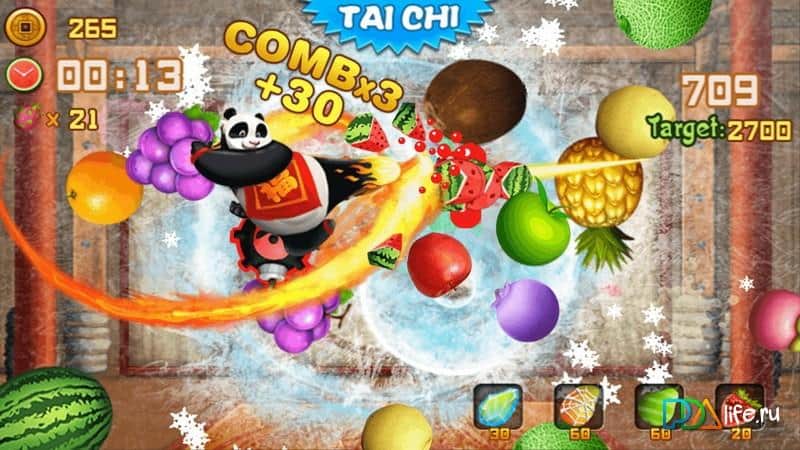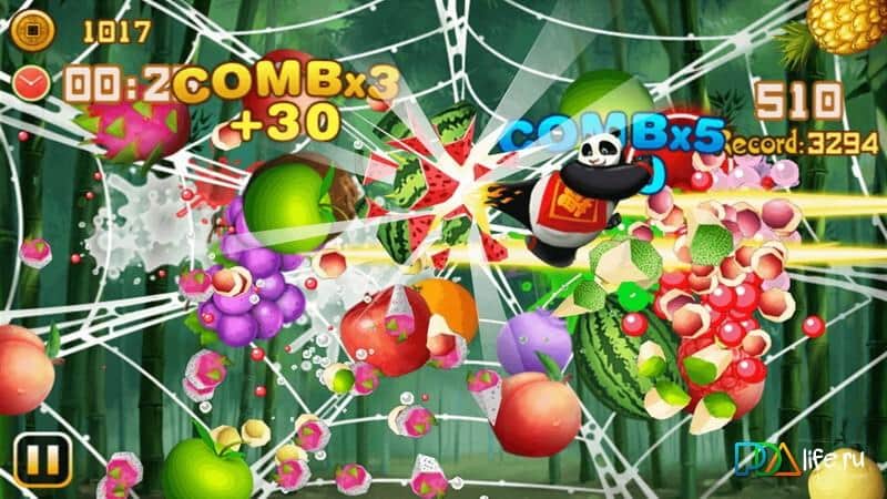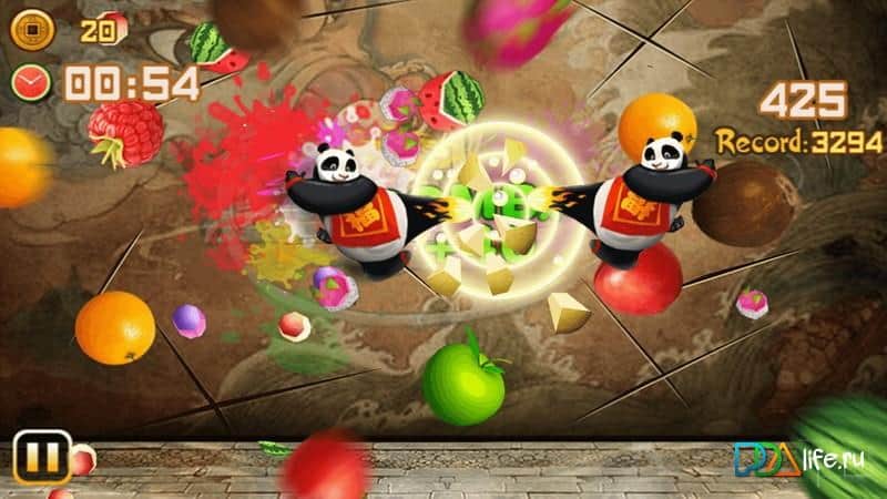 Kung Fu Meyve - Android için sulu bir arcade oyunu, burada Kunga-Panda gücüyle meyve saldırısını geri püskürtmeniz gerekiyor. Pandayı yönetin ve meyveleri küçük parçalara ayırmak için combo vuruşları ve saldırıyı yavaşlatma, yardım için bir ejderha çağırma veya kahramanınızın bölünmesine yardımcı olabilecek ek bonuslar sayesinde parçalayın. Ana karakterin yenilmez gücünü gösterin ve 60 heyecan verici seviyede size doğru uçan bir meyveyi kaçırmayın. Her yeni seviyede oyunun zorluğu artacak ve meyve sayısı geometrik bir ilerleme ile çoğalacaktır.