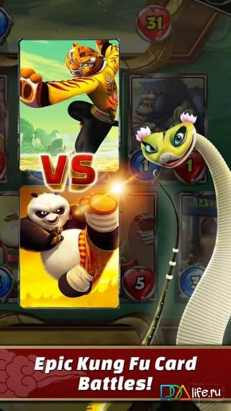 Kung Fu Panda: Destiny Savaşı - ismini taşıyan animasyon filmi ile aynı hikayeye sahip Android oyunu, tanıdığınız karakterlerle yeniden karşılaşacağınız bir oyun. Bu oyunda, dünyanın dört bir yanındaki oyuncularla kung-fu savaşlarına doğrudan katılacaksınız. Farklı karakterlerden, dövüş tekniklerinden ve silahlardan oluşan kart koleksiyonunuzu toplayın. En iyi oyunculara meydan okuyun ve en iyi dövüşçülerinizi kullanarak arenada savaşın. Arkadaşlarınızla oynayın ve dövüş stratejinizi geliştirin, liderlik tablosunun en üstüne çıkın. Kendi benzersiz kartlarınızı oluşturun ve değerli ödüller kazanın.