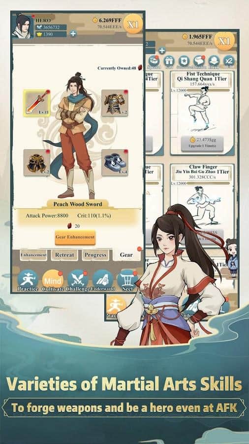 Kung fu Üstün - Burada pratik yapabilir, ilerleyebilir ve her türlü mistik dövüş sanatlarını aşabilirsiniz, zihinsel tekniklerin, yumruk, ayak, bıçak ve hançer tekniklerinin cazibesini hissedebilir, derin doğu kung-fusunu anlayabilir ve dünyanın dört bir yanından ustalarla pratik yapabilirsiniz. Dövüş sanatları turnuvalarına katılın ve ülkeyi birleştirmek için pratikler yapın, değerli hazineleri kazanın, en güçlü rakipleri yenin, seviyenizi ve ustalık becerilerinizi artırın. Her gün dövüş gücünüzü geliştirin, böylece kung-fu dünyasında yenilmez olun.