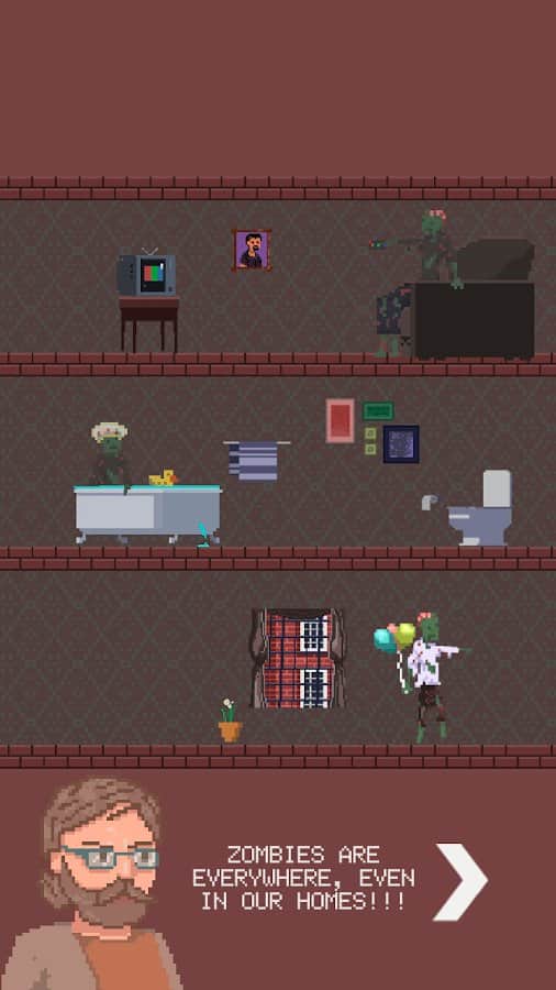 Zombi Dairesi – Android için eğlenceli bir oyun, burada zombilerden insanları kurtaracaksınız. Zombi kıyameti geldi ve iki hafta sonra hayatta kalan insanlar, dışarı çıkmaktan korkarak dairelerinde kalmaya devam ettiler. Göreviniz, insanların dairelerinden çıkmalarına yardımcı olmak için katlar arasında hareket edip kapıları açmaktır. Her katta sizi tehlikeli zombiler bekliyor olacak, onlardan kaçınarak görevlerinizi yerine getirin. Ana hedefiniz, mümkün olduğunca çok insana yardım etmektir. Bina içindeki tüm katları keşfedin ve yeni karakterlerle tanışın.