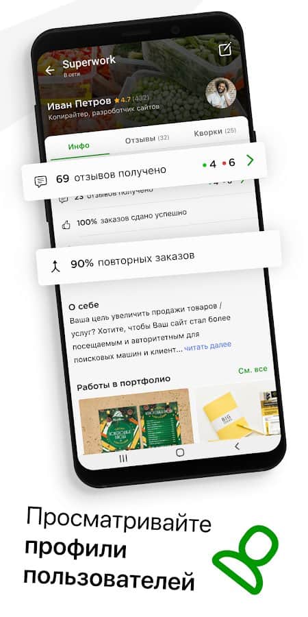 Kwork uygulaması, her serbest çalışan için ve daha fazlası için kullanışlı bir yardımcıdır! Faydalı beceriler öğrenin, kayıt olun ve sürekli işler ve çok fazla iş bulmak için görevlerle ilgilenin. Müşterilerle rahat bir sohbet imkanı, her kullanıcı hakkında detaylı bilgi, hızlı destek hizmeti, öğretici makaleler ve ipuçları, hazır hizmetler (kwork'lar) oluşturma ve önemli olaylar hakkında anlık bildirimler! Müşterilerinizin güveni artacak, çünkü Kwork uygulamasında sipariş oluşturmak artık kolay ve güvenilir.