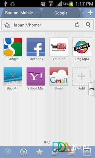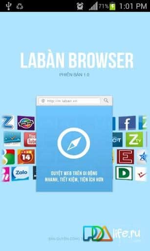 Laban tarayıcı - VNG Corporation geliştiricilerinden Android için iyi bir Vietnam tarayıcısıdır ve çok sayıda özellik ve imkan sunmaktadır. Bunlar arasında: jestle kontrol desteği, yer imi, geçmiş, çoklu pencere, Google'dan hızlı arama sonuçları, gece modu, PDF dosyalarını okuma desteği ve daha fazlası bulunmaktadır.