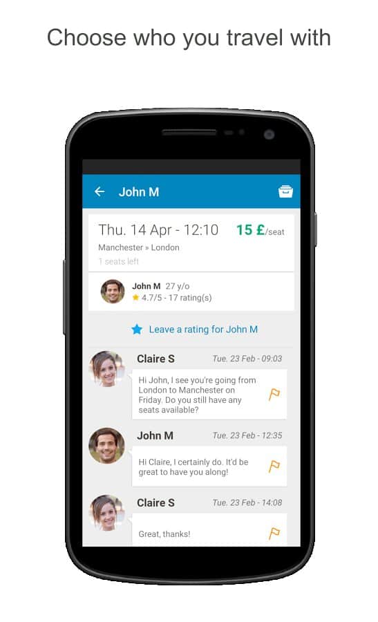 Yorumlar ile laBlaCar üzerinde Android