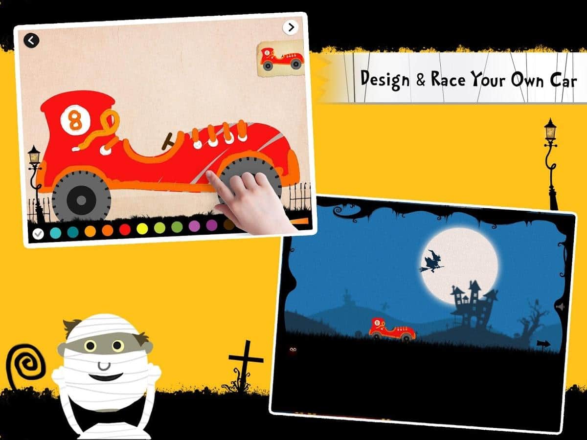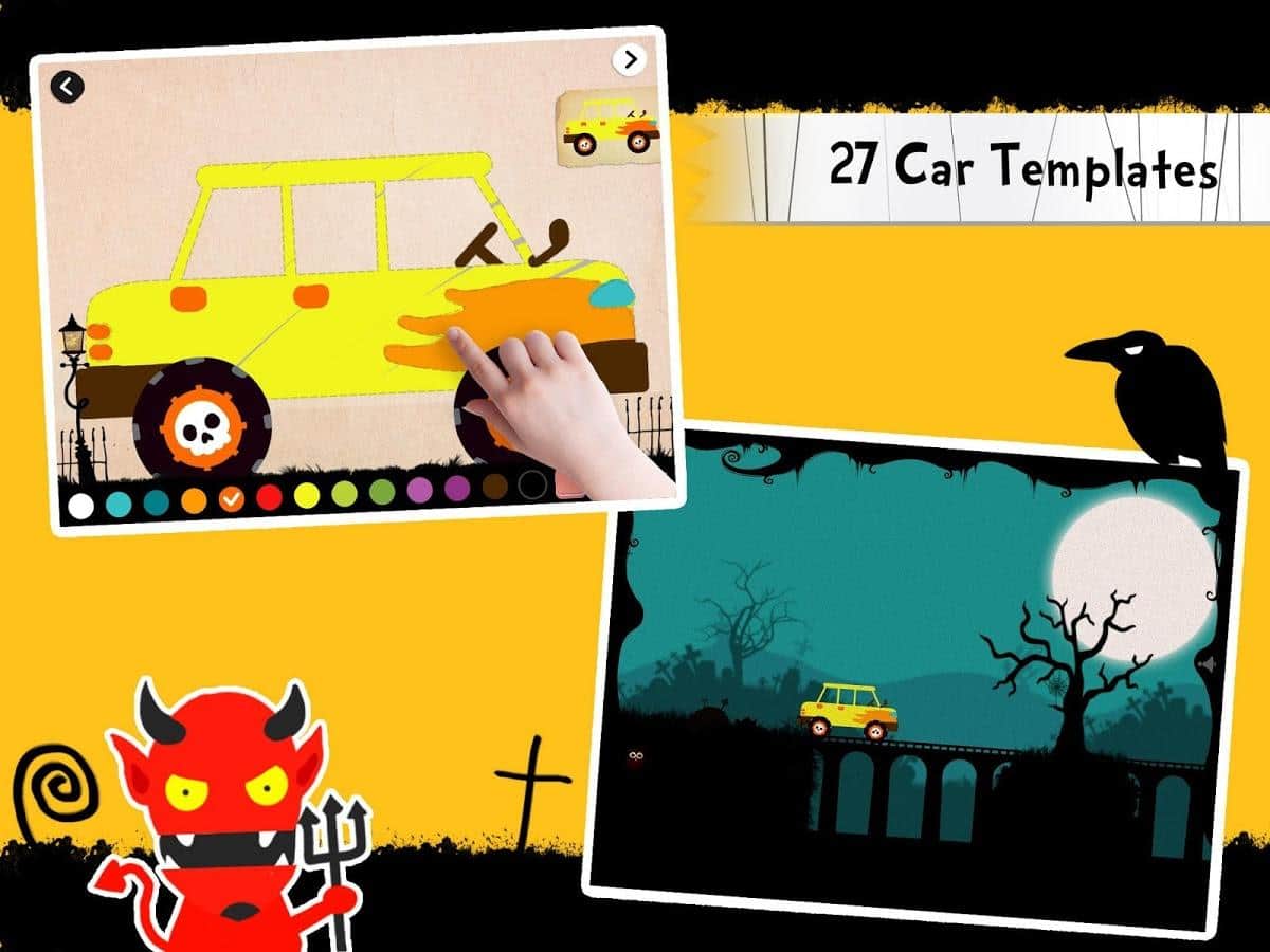 Labo Cadılar Bayramı Aracı – Android için bir yarış oyunu, burada kendi arabanızı çizip tehlikeli parkurlarda sürmeniz gerekiyor. Bu eğlenceli oyun çocuklara çok hitap edecek çünkü burada hayallerini gerçeğe dönüştürebilirler, taslaklara veya elle çizerek arabalarının nasıl görüneceğini sadece kendileri belirleyecek. Tüm hayal gücünüzü ve yeteneklerinizi kullanın ve 13'ten fazla renk, 8 çeşit lastik ve 14 çıkartma kullanarak eşsiz ve benzersiz bir araba yaratın, bu araba tehlikeli parkurlarda seyahat edecek ve çeşitli engelleri aşacaktır. Garajınızda sınırsız sayıda araba olabilir.
