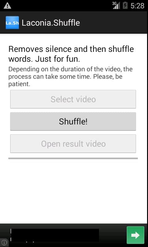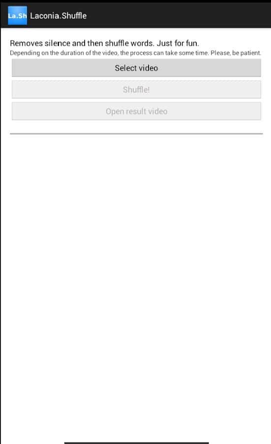 Laconia.Shuffle – NIKNAMELOGIN geliştiricisinden Android için video kayıtları ile denemeler yapmayı sevenler için bir uygulama. Bu program sayesinde yalnızca videolardaki sessizliği ortadan kaldırmakla kalmayacak (bu otomatik olarak yapılmaktadır), aynı zamanda kelimeleri ters çevirme veya tüm kelimeleri karıştırma gibi çeşitli efektler uygulayabileceksiniz. Programın bir diğer özelliği, video kaydının interneti kullanmadan doğrudan cihazınızda işlenmesidir; bu da video dosyanızın yalnızca size ait olmasını sağlar. Keyifli kullanımlar ve harika ruh halleri dileriz!