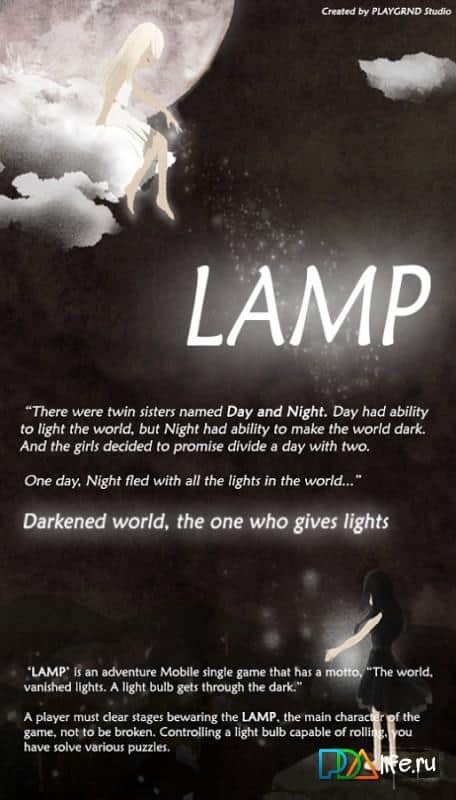LAMP: Gün&Gece - alternatif bir evrende geçen bir aksiyon platform oyunudur. Dünya henüz oluşmaya başlarken, iki kız kardeşin ışık ve karanlık güçlerini temsil ettiği büyük felaketler yaşandı. Sonrasında zamanın gündüz ve gece olarak ayrılması kararlaştırıldı ve her bir kız kardeş kendi zaman dilimini aldı. Ancak beklenmedik bir olay gerçekleşti; tüm ışık kayboldu ve beyaz kardeş, dengeyi geri getirebilecek bir varlığı yeryüzüne gönderdi. Bu gizemli karakterin rolünü üstlenerek oyunu oynayacaksınız. Oyun, her biri yatay lokasyonlardan oluşan seviyelere ayrılmıştır; bu seviyeleri geçerken sadece çevikliğinizi değil, aynı zamanda zekanızı da kullanmanız gerekecek.