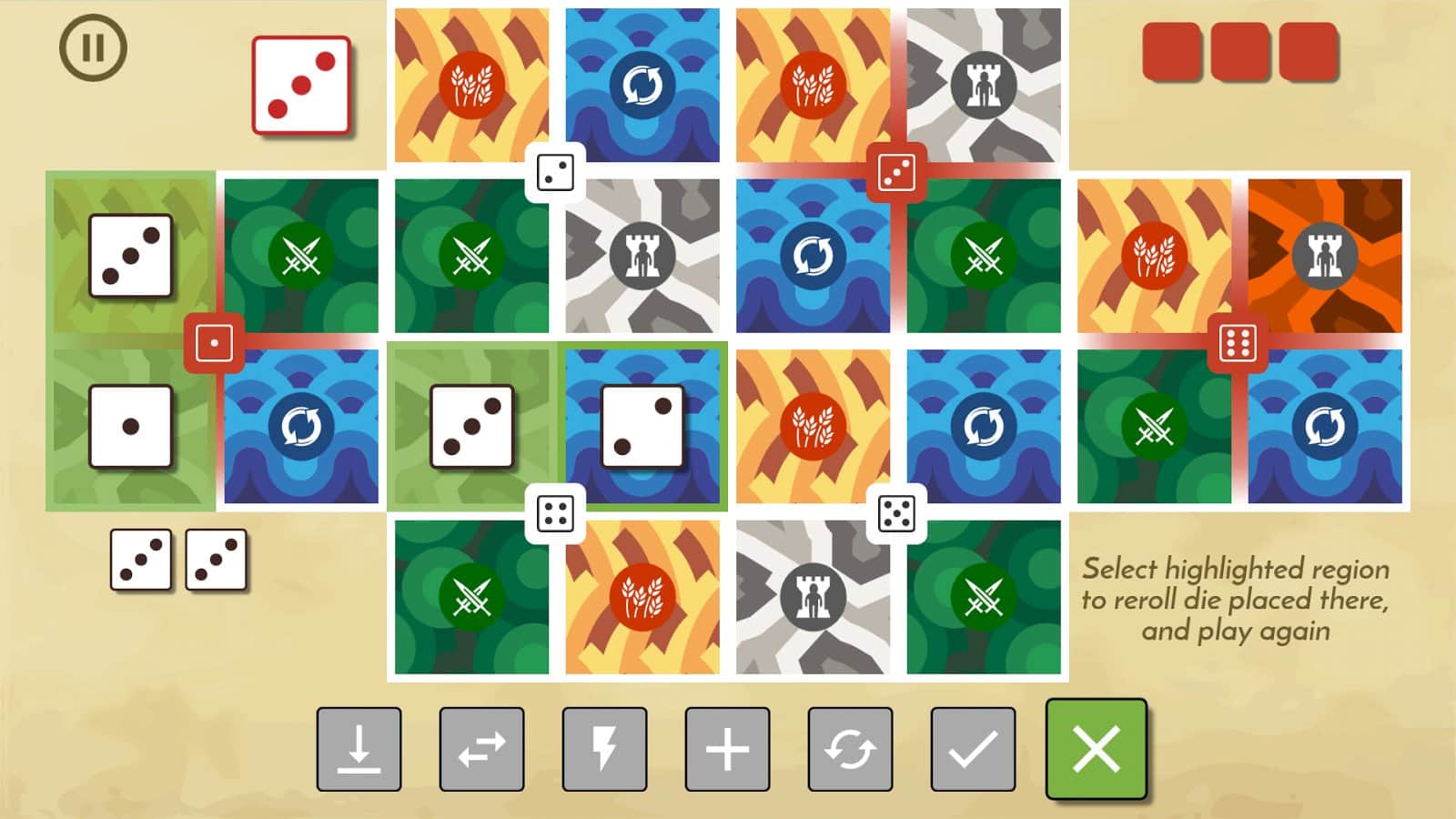 Land 6 Tahtası Oyunu – Android için bir masa oyunu, burada toprakları zardan korumanız gerekiyor. Bu oyun, bir solitaire'ı andırıyor, ancak burada zarları alandan kaldırmanız gerekmiyor, aksine onları hareket ettirmeniz gerekiyor ki düşmanınızı yenip topraklarınızı onun baskısından kurtarabilin. Ordunuzu tüm bölgelerde yerleştirin ve zara saldırın. Ana hedefiniz, zarı ev bölgesine en az bir ordu yerleştirmek olacak. Farklı eylemler gerçekleştirin ve savaş stratejinizi ve toprakları ele geçirme planınızı dikkatlice geliştirin, düşmandan kurtararak. Bu oyundaki sonsuz savaşa katılın, verimli topraklar ve dünya üzerindeki güç için.