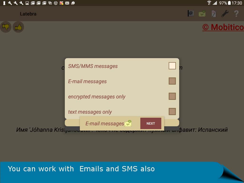 Latebra Light - uygulama, sizi SMS yazışmalarınıza ve e-posta mesajlarınıza yönelik saldırılardan koruyacaktır. Bu uygulama sayesinde, telefonunuz çalınsa bile, kötü niyetli bir kişi hiçbir mesajınızı okuyamayacaktır. Tüm mesajlarınız, yüksek düzeyde kriptografik dayanıklılığa sahip, özgün bir şifreleme yöntemi ile mükemmel bir şekilde şifrelenir. Uygulamayı Google ve Yandex hizmetlerine bağlama ve rehberle entegre olma imkanı vardır. Eğer bir şey anlamıyorsanız, o zaman size Rusça ve İngilizce dillerinde ayrıntılı bir kullanıcı kılavuzu yardımcı olacaktır.