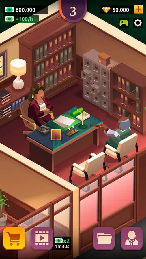 Hukuk İmparatorluğu Tycoon - Tembel Oyun Adalet Simülatörü - Hukuk hizmetleri sunmak iyi bir şey, ama kendi hukuk firmanızı kurmanın zamanı gelmedi mi? Bu alanda deneyimli uzmanları bir araya getirin ve tam olarak çalışmaya başlamak için mekanları hazırlayın. Gelen siparişleri kaliteli bir şekilde yerine getirin ve böylece müşterilerin güvenini artırın, yenilerini cezbetin, kendi itibarınızı yükseltin. Başarılı bir şekilde tamamlamak için süreleri, görevleri, her türlü detayı ve olasılıkları dikkate almak gerekiyor. Özel dedektiflerle işbirliği yapın ve işiniz için yeni yerler açın, insanlığın daha iyi hale gelmesine yardımcı olun!
