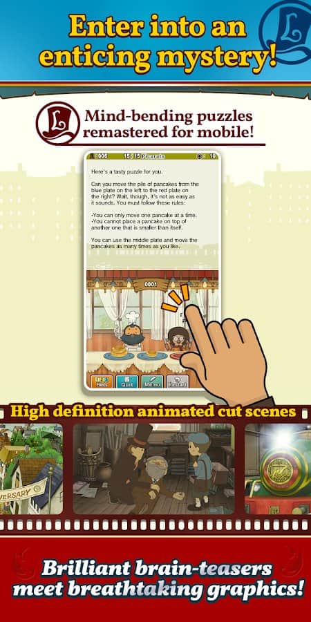 Layton: Pandora'nın Kutusu HD – android için macera oyununun ikinci bölümü, burada profesör Layton ve asistanı Luke'a gizemli bir olayı araştırmalarında yardımcı olacaksınız. Oyunun hikayesi, profesör Layton'un mentorü Dr. Andrew Schrader'ın Elysium kutusunu ele geçirdikten sonra gizemli bir şekilde ölmesiyle başlıyor. Tek ipucu ve ipucu, lüks Mulentaria ekspresine ait bir bilet oldu. Zor bulmacaları çözün, yeni tanıdıklarınızla iletişim kurun ve Elysium kutusunun sırrını çözün.