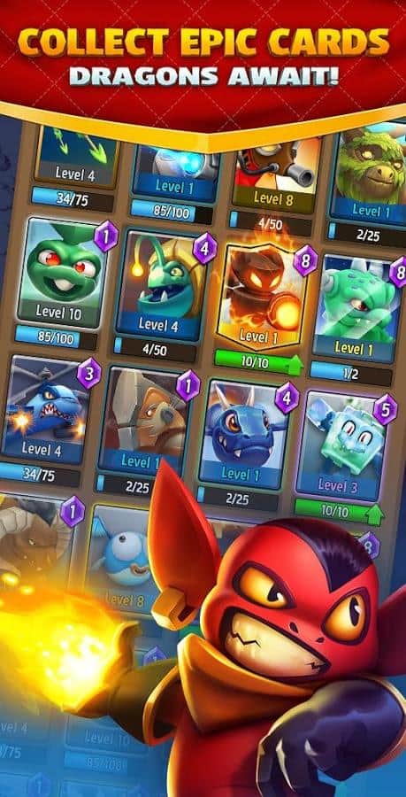 Ejderhalar Ligi – android için heyecan verici bir oyun, burada ejderha eğitmeni olacaksınız. Bu oyunda görevleriniz, benzersiz ejderha ve sihirli varlıklar koleksiyonunuzu toplamak ve kalenizi düşmanlardan korumaktır. Ejderhalarla dolu kart koleksiyonunuzu topladığınızda, diğer oyunculara meydan okuyabilir ve arenada onlarla savaşabilirsiniz. Farklı görevleri tamamlayın, koleksiyonunuzu benzersiz yeteneklere sahip yeni ejderhalarla zenginleştirin ve rakiplerin kalelerini yerle bir edin. Diğer oyuncularla genel sohbet alanında iletişim kurun ve onlarla savaşarak en iyi eğitmen olduğunuzu kanıtlayın.