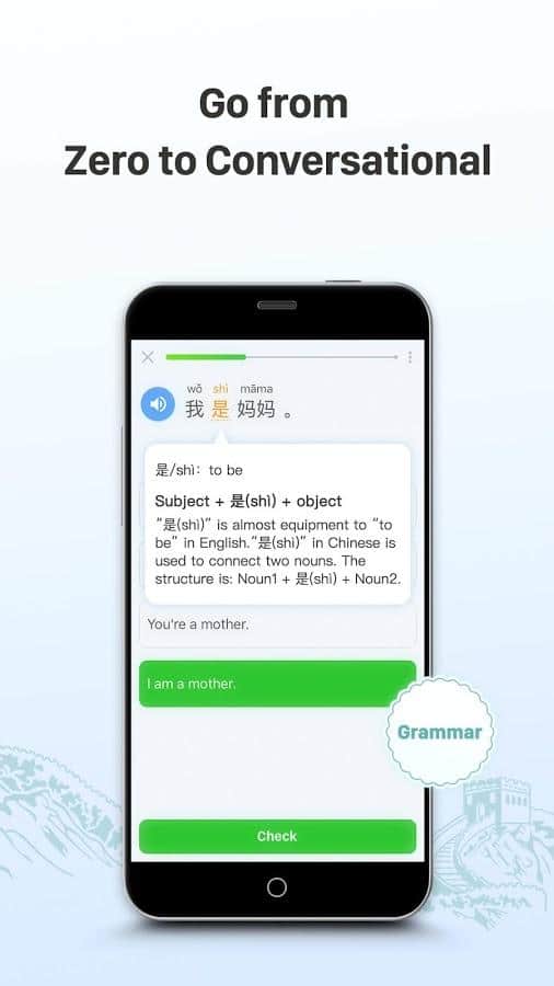Çin dili öğreniyoruz - HelloChinese - her yaştan insanlar için bir uygulamadır, çünkü bu uygulama sıradan bir oyun şeklinde tasarlanmıştır ve burada eğlenceli bir şekilde Çin dilini öğreneceksiniz. Çoğu uygulamanın aksine, burada hemen kelimeler veya karakterler üzerinize yığılmayacak, önce temelleri öğrenecek ve sonra örneklerle öğretmeye başlayacaklar. Daha çok işiterek öğrenenler için sesli destek de var, yani tüm dersler sesli olarak sunulacak ve isterseniz onları dinleyebileceksiniz.
