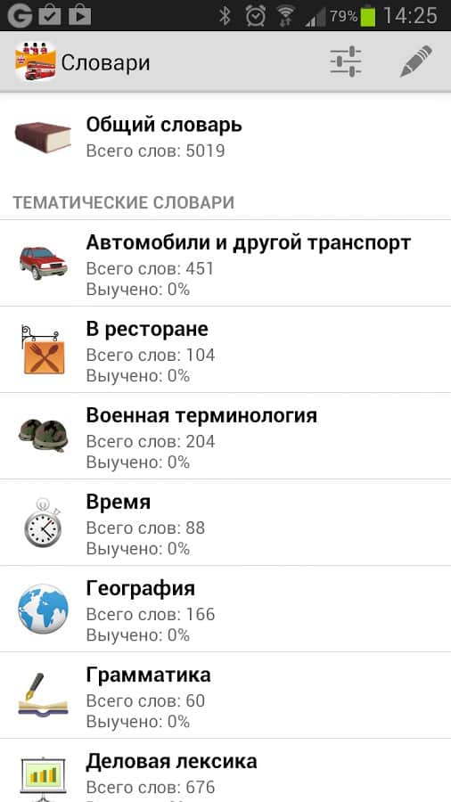 Ayrıca, 30 tematik sözlük (Yemek ve mutfak, Tıp, İş İngilizcesi, Hayvanlar vb.) mevcuttur ve bunlar üzerinden başarılı bir şekilde eğitim alabilirsiniz. Kendi tematik sözlüklerinizi oluşturma imkânınız var; bu sözlüklere kendi kelimelerinizi ekleyebilir veya genel sözlükten seçebilirsiniz.