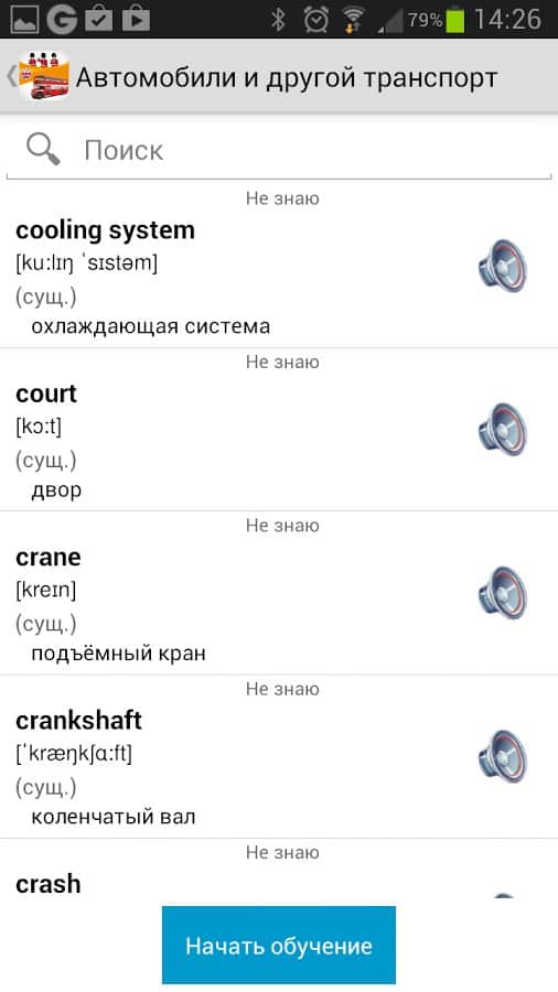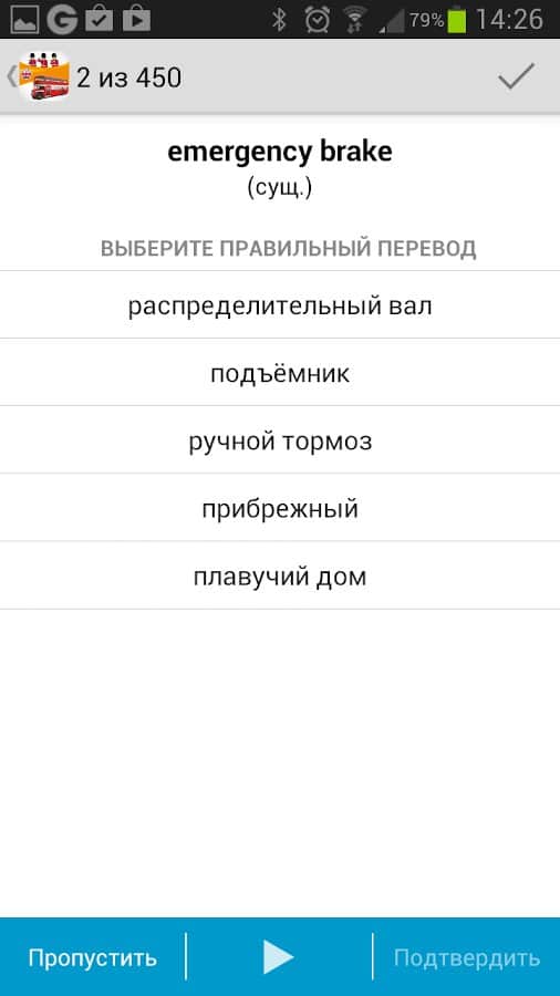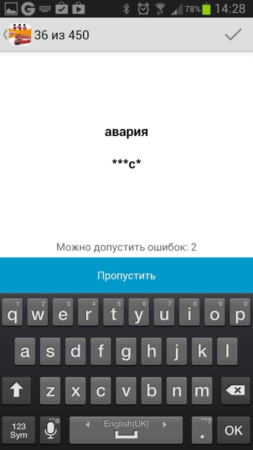 Oldukça kullanışlı bir eğitim sistemi (kartlarla yapılan Leithner'in aralıklı tekrar sistemine dayanan) İngilizce kelimeleri maksimum verimlilikle ve kolaylıkla ezberlemenizi sağlayacaktır. Programda seçim yapabileceğiniz 4 farklı alıştırma türü bulunmaktadır: "Rusça'ya çeviri", "İngilizce'ye çeviri", "Diktasyon" ve "Kelimeyi tahmin et"
