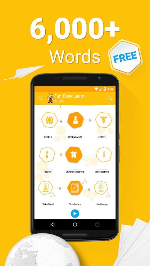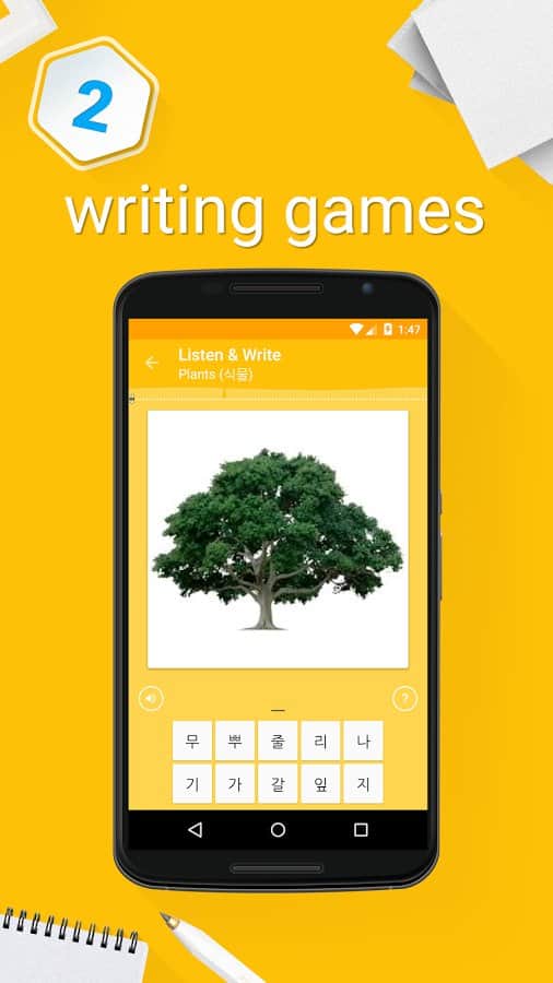 Korece Kelime Bilgisi Öğrenin – Korece öğrenmenizi sağlayan eğlenceli bir Android oyunudur. Dünyayı gezmeyi seviyorsanız, yeni bir ülkeye taşınıyorsanız veya uluslararası bir şirkette çalışıyorsanız yeni bir dili öğrenmeniz gerekmektedir. Koreceyi kolay bir oyun formatında öğrenin ve kelime dağarcığınızı yeni kelimelerle zenginleştirin. Uygulamada 6000'den fazla kelime, resimler, fonetik transkripsiyonlar, 15'ten fazla tematik soru ve 140 alt konu bulunmaktadır. Yabancı dili öğrenirken eğlenceli vakit geçirin ve bunun için minimum çaba harcayın. Oyunda üç zorluk seviyesi bulunmaktadır: başlangıç, orta ve ileri.