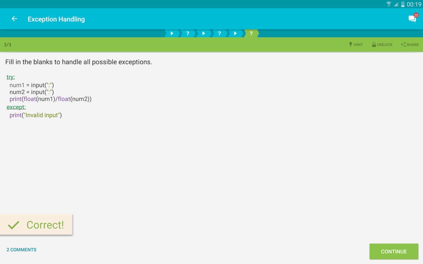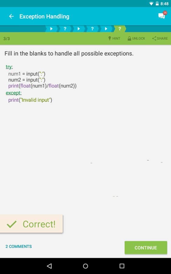 Python Öğrenin - Hayır, Python'u öğrenmek zorunda değilsiniz. Bu bir oyun değil, Python gibi bir programlama dilini öğrenmenize yardımcı olacak bir uygulama. Bu uygulama, insanlara öğrenme görevini kolaylaştırmak amacıyla yapılmıştır. Çünkü kitaplardan öğrenmeye çalıştığınızda, bu süreç sıkıcı hale gelebilir ve oldukça zor olabilir. Bu nedenle, bu uygulamanın yazarları her şeyi bir oyun şeklinde sunmayı tercih ettiler. Görevleri tamamlayarak puan kazanacaksınız. Puanlarınıza göre görevler zorlaşacak ve yeni görevler öğrenmeye başlayacaksınız. Bu, derinlemesine bir programlama kursu değil, yalnızca temel işlevlerin öğrenilmesine yardımcı olacak bir eğitimdir.