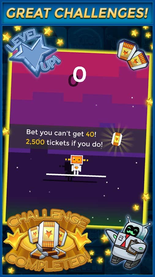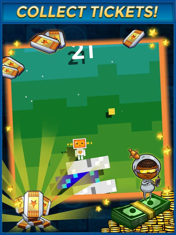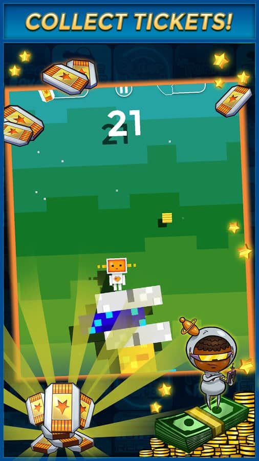 Hadi Atlama – Android için bir zaman öldürücü, burada bir kahramanı kontrol edeceksiniz, o da zıplamalar yapıyor. Reflekslerinize güvenin ve kahramanı zıplamak için telefon ekranına zamanında dokunun ve hareket eden bloklarla çarpışmamaya çalışın. Bloklar, kahramanınıza farklı yönlerden yaklaşacak, bu yüzden son derece dikkatli ve tedbirli olun ve bloklardan bir kule oluşturun. Bloklar farklı boyut ve renkte olacak, bu da görevlerinizi zorlaştıracak. Bir bloğa çarparsanız, oyun sizin için sona erecek. Blokların üzerinde zıplayın ve değerli ödüller için çekilişe katılmak üzere bilet kazanın. En iyi sonuçlar için arkadaşlarınızla yarışın.