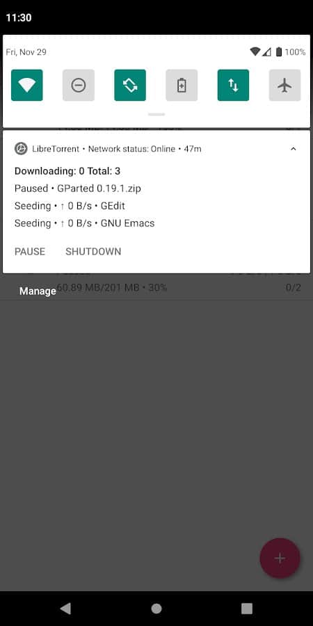 LibreTorrent - Seçilen Torrent dosyalarının ardışık olarak indirildiğini izleyin. Ağ, pil ve arayüz ayarlarını kendiniz yapılandırın, 35'ten fazla çeviriden istediğiniz dili seçin, aynı anda birden fazla dosya indirmeyi etkinleştirin, hem küçük hem de büyük verileri indirin ve otomatik işlemin ne kadar hızlı gerçekleştiğini izleyin. İlerlemeyi hem uygulamada hem de bildirim merkezinde takip edebilirsiniz.