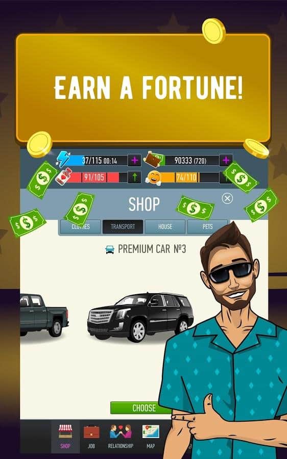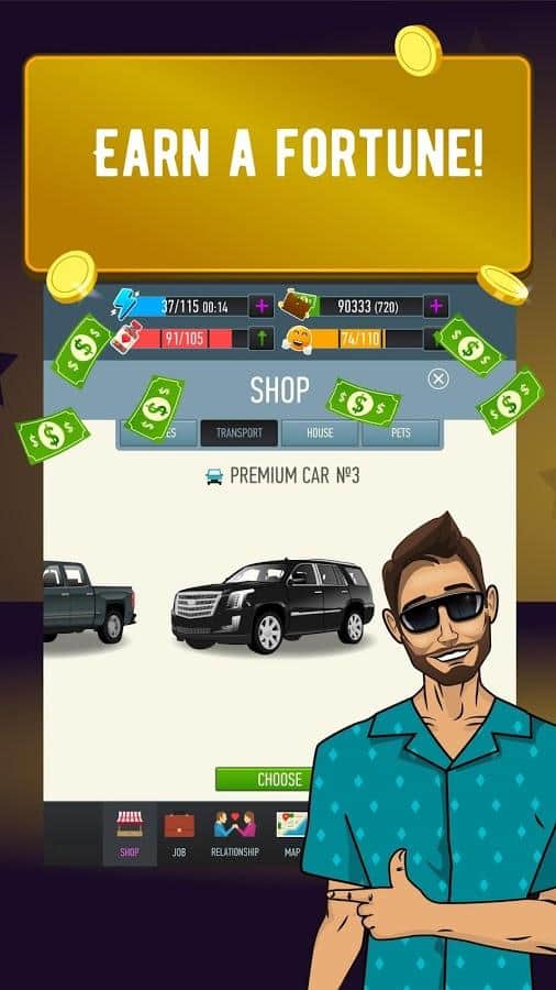 Kendi işin veya bir helikopter hayal ediyor musun, yoksa belki dev bir havuzlu şato mu? LifeSim - tam da ihtiyacın olan şey, en cesur hayallerini gerçeğe dönüştürme şansın var. Kaderin sadece senin ellerinde. Herhangi bir yönde geliş, kim olmak istediğine karar ver. Para kazan, iş değiştir, profesyonel becerilerini geliştir ve kariyerinde ilerle. Kendine bir evcil hayvan edin, sağlam ve sevgi dolu ilişkiler kur. Her zaman istediğin gibi yaşa, sadece bir tık seni büyük şöhretten ayırıyor. Herkese layık olduğunu kanıtla.