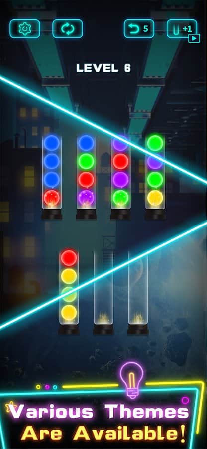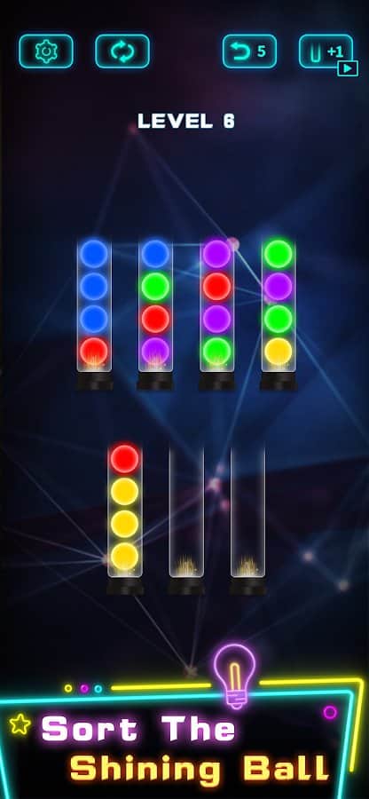 Herkesin renkli suyu şişelere dökme bulmacasıyla tanıştığına eminim, ama renkli topları hareket ettirmeniz gereken bir oyunu gördünüz mü? O zaman 30'dan fazla farklı zorluk seviyesine sahip benzersiz oyun Işık Sıralama Bulmacası'na hoş geldiniz. Neon renklerle şişeleri doldurun, doğru yerlerde tam bir palet toplayın. Şişeden şişeye topları hareket ettirmek için önce neyi taşımak istediğinizi seçin, ardından yerleştirmek istediğiniz şişeye tıklayın. Bulmacayı çözmekte zorlanıyorsanız - ek bir şişeden faydalanın.