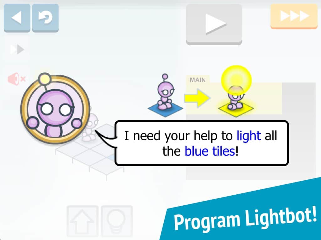 Lightbot, başlangıçta flash versiyonu ile çıkan ve sonrasında Android dahil olmak üzere çoğu oyun platformuna port edilen popüler bir bulmacadır. Lightbot'un oyun mekaniği programlama temellerine dayanmaktadır. Göreviniz, bir robotu programlayarak konumdaki tüm lambaları yakmaktır. Lightbot'ta kod oluşturma süreci görsel bir biçimde gerçekleştirilmiştir, bu da bu eğlenceli aktivitenin temel kavramlarını anlamayı önemli ölçüde kolaylaştırır.