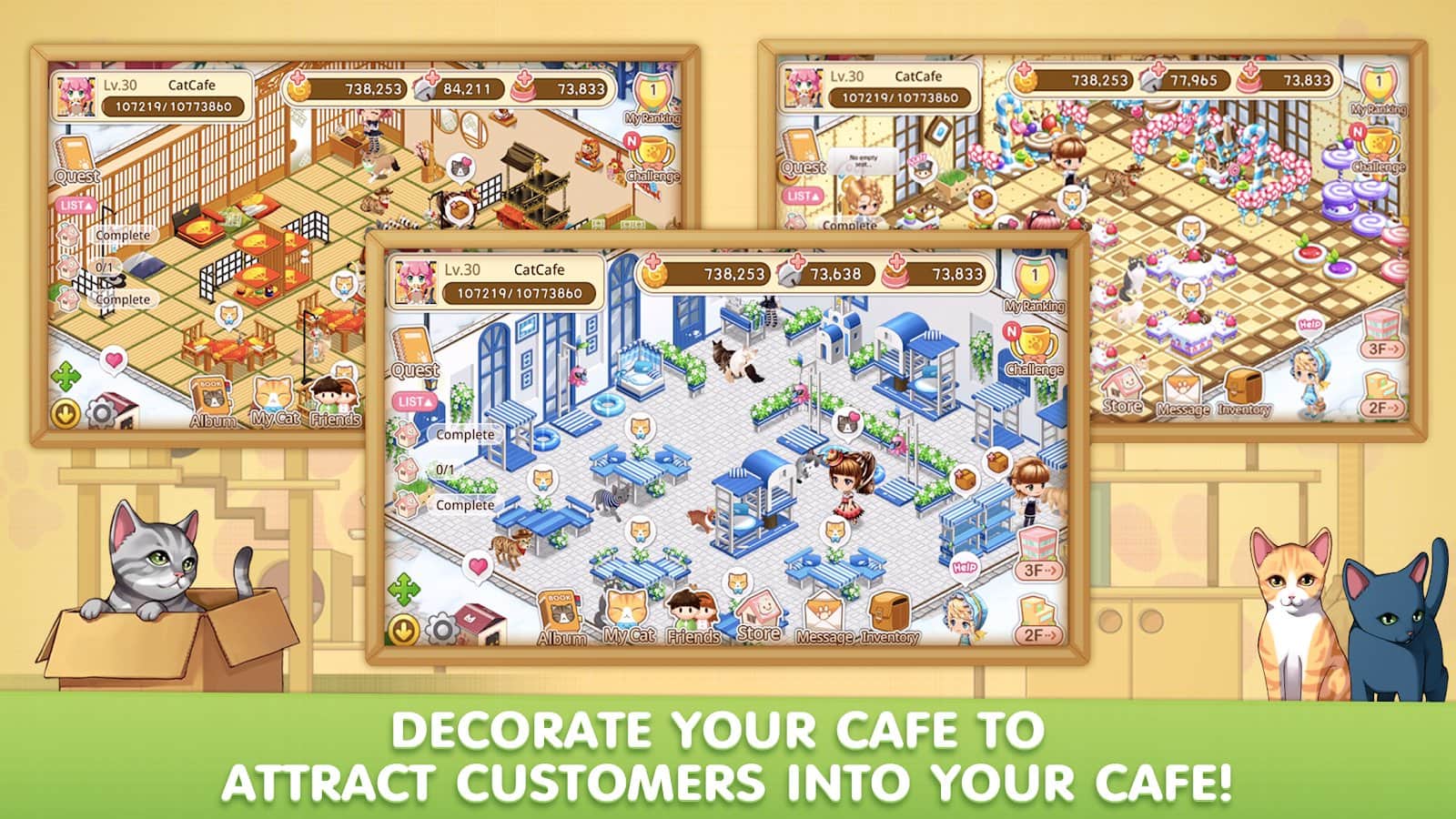 LINE Kedi Kafesi – sevimli evcil hayvanlarla dolu küçük bir kafeyi yöneteceğiniz Android için eğlenceli bir oyundur. Kontrolünüz altındaki kafeyi düzenlemeli, özel bir menü oluşturmalı ve birçok ev kedisini oraya yerleştirmelisiniz. Yeni kedi türlerini keşfedin ve onların kafede yaşamalarına izin verin. Kedileri yetiştirin ve ziyaretçilerinizi mutlu edin. Kedilerinize sahipler arayın ve onlara yeni bir ev bulun. Ayrıca kafenizle ilgilenmeyi ve onu şehrin en popüler mekanı haline getirmeyi unutmayın. Oyunda 400’den fazla sıradışı kedi türü bulacaksınız, bu kediler size benzersiz görünümleriyle keyif verecek.